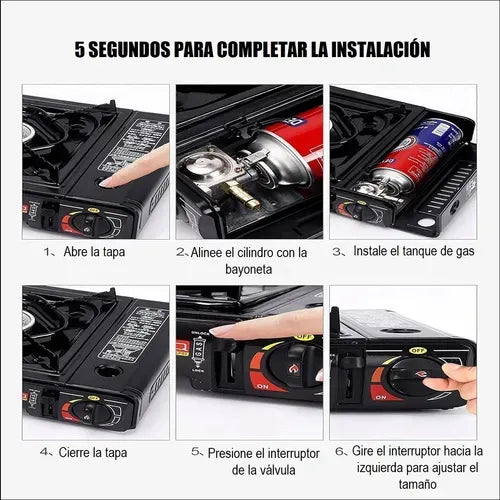 CARACTERÍSTICAS:-Cocinilla portátil a gas para camping.-Portátil, pequeña, fuerte y duradera.-Quemador de aluminio resistente a altas temperaturas.-Buena disipación del calor.-Diseño de... Leer más...